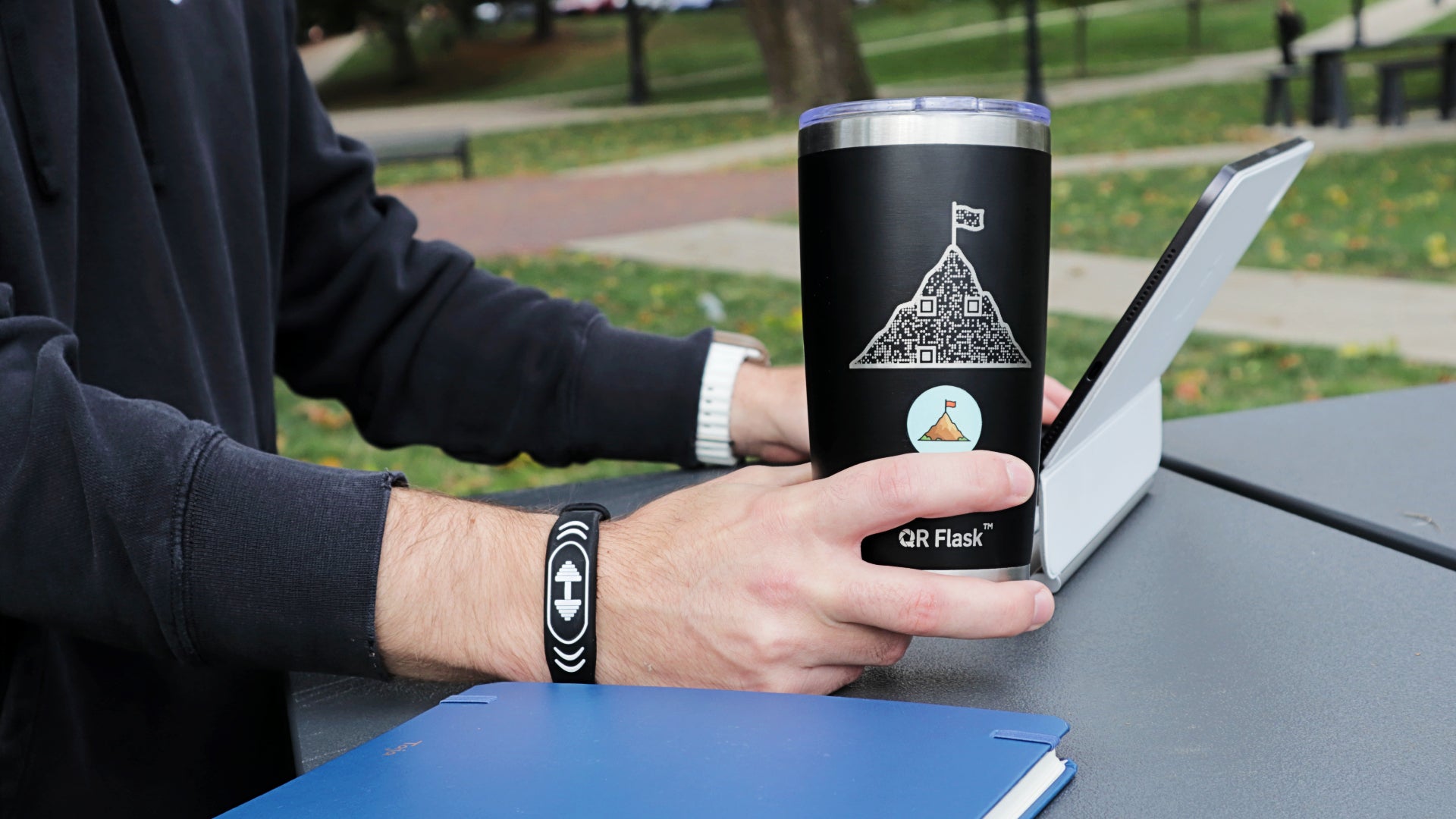 Each QR Flask has a printed QR code. Open your camera, scan the code, and tap the link to view your daily digital content on any smartphone.